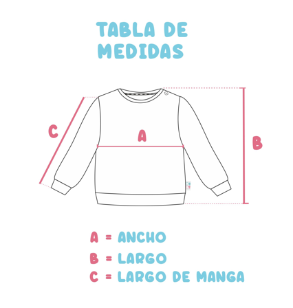 24 a 36 meses: Largo: 42cm Ancho: 34cm Manga: 37cm
