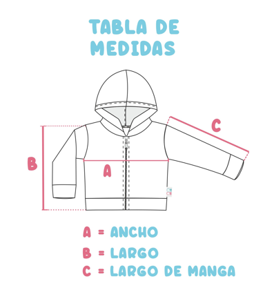 18 a 24 meses: Largo: 40cm Ancho: 35cm Manga: 33cm