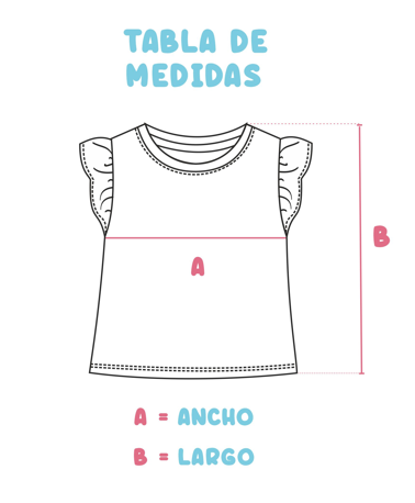 Viene desde 18-24 meses a talle 6 añosy sus medidas son: